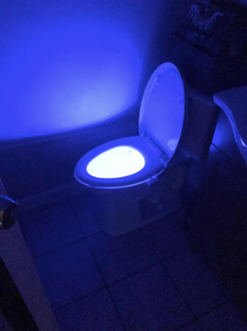 Simply attach the motion-activated LED light to any standard toilet bowl and get ready for the light show! It can emit any one of 16 different colors or be set to cycle through all of them on rotation (which is definitely the setting I would choose). Finally, you can make a midnight bathroom trip without having to turn on the light and blind yourself.