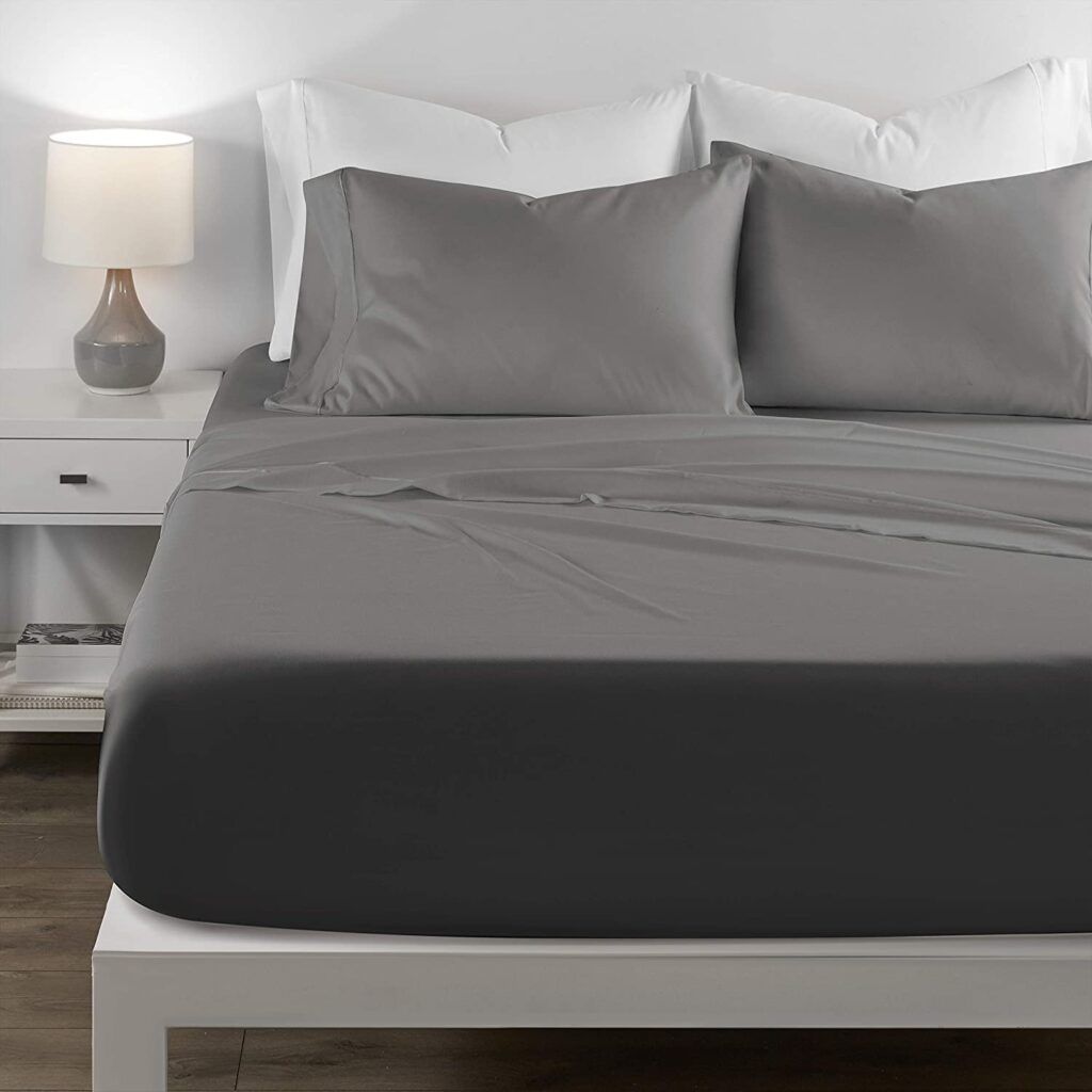 The color of your sheets can change the mood of the bedroom, which is why I love a set of rose-pink sheets for a touch of elegance. This set comes with two pillowcases, a flat sheet, and a fitted sheet at a very affordable price.