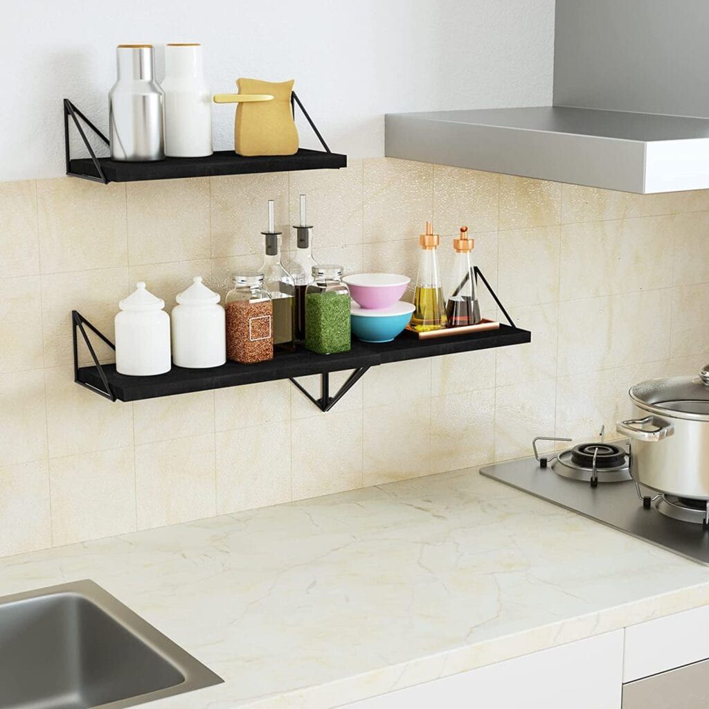 Installing floating shelves is such an underrated way to create more space in a room. It naturally makes your clutter of knickknacks look organized and visually appealing. What’s not to love? And these particular shelves can be installed two ways, with brackets on the top or the bottom.
