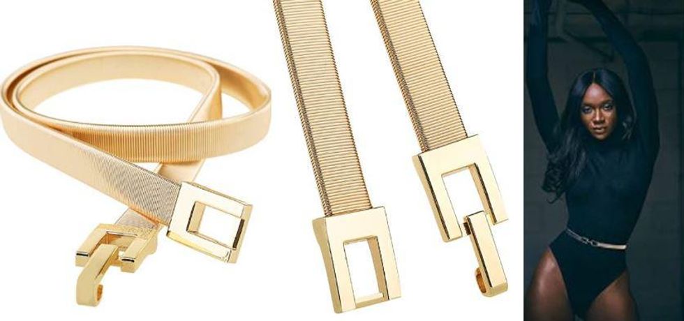 If you like drawing attention to your waistline while accessorizing, then this is the skinny belt for you. The elastic metal stretch belt comes in small and medium sizes and in either silver or gold. Honestly? I ended up buying both colors because they are so affordable and match almost any outfit that I put together.