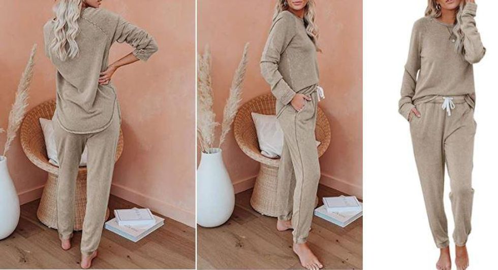 The super soft fabric is lightweight but warm and has adjustable drawstring around the waist to adjust the fit. You’ll never want to leave the house when you try this set on.