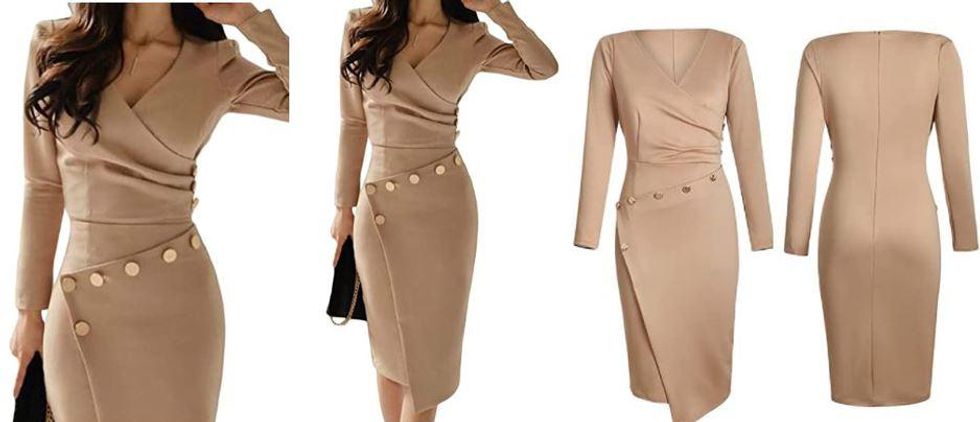 If you want all your friends to be envious of your outfit, this is the dress to accomplish that goal. The deep V neck bodycon dress is versatile enough to take you from the office to a bar or restaurant while achieving elegance and style.