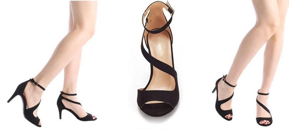 Open-toe pumps are essential to every woman’s shoe closet and these stilettos are my all-time favorite. They have a rubber sole to stop slips, a buckle ankle closure to keep them firmly on your feet and the heel is three inches, which is the perfect height for comfort and glamor.