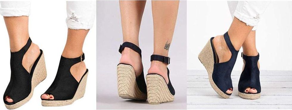 Looking for a casually glam look? Then these are the peep-toe slingbacks you need in your closet. The wedge heels are super comfortable on the feet and the ankle strap has elastic in it, so it’s heaven on your ankles.
