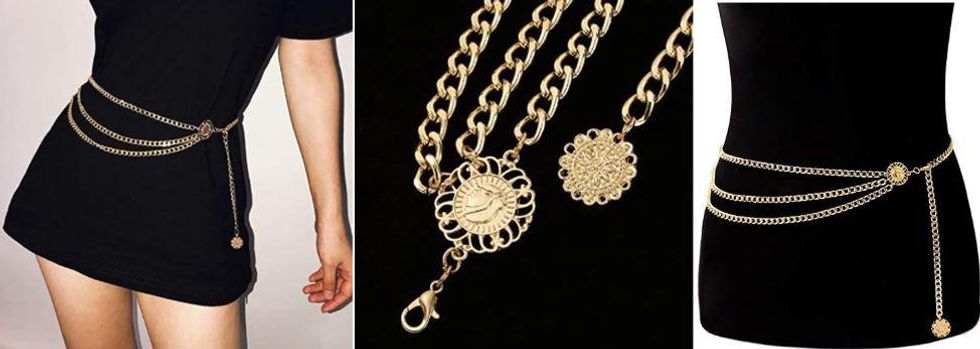 If you’re looking for an accessory to add a bit of glam to your look, then this metal chain belt is for you. It comes in gold and silver and is perfect to add to a dress, skirt, or pants for a bit of sparkle.