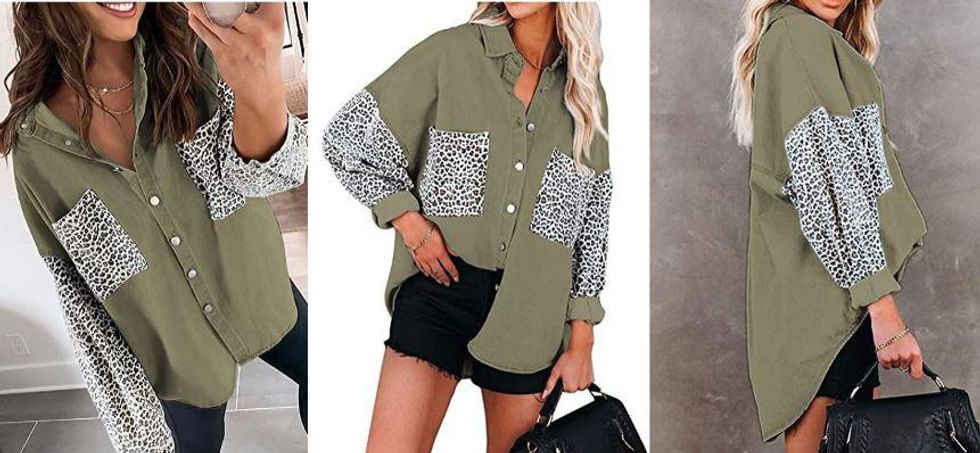If you’re looking for an eye-catching look, this leopard print contrast denim jacket is just the right look. It looks great with jeans, denim shorts, or leggings and will get all your friends asking where you got it from.