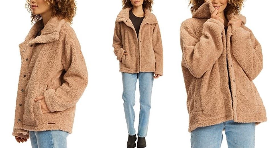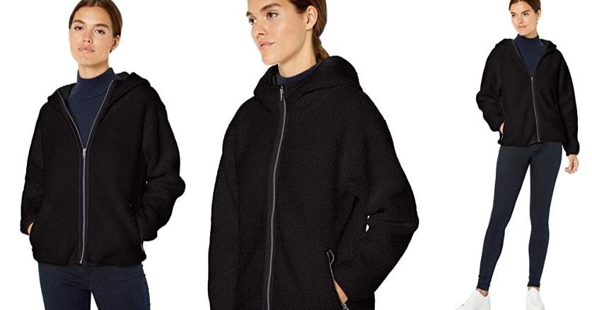 If you’re looking for a hooded jacket, you won’t be disappointed with this teddy zip jacket. The plush fabric is super comforting and it’s a great overcoat to go on casual outings in.