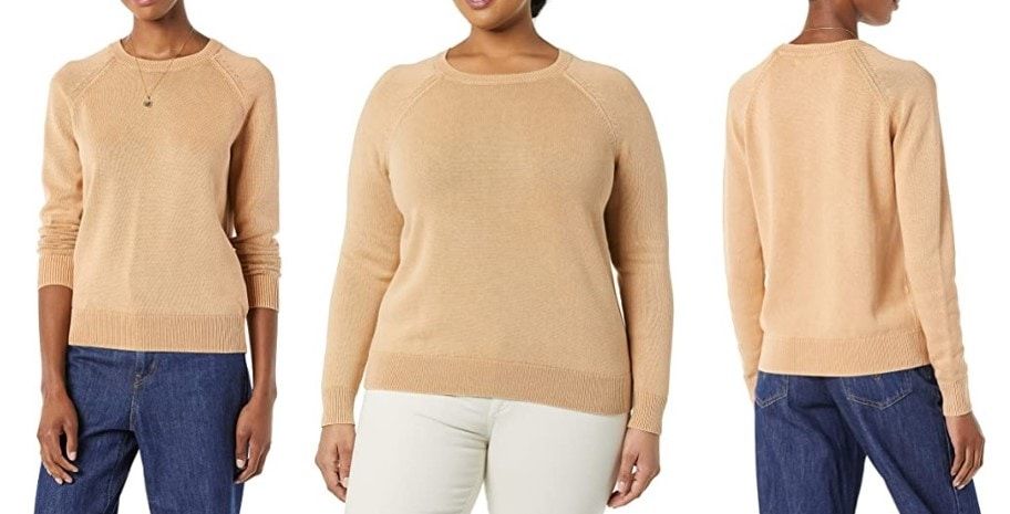 If you’re looking for a basic essential sweater, this stylish crewneck won’t disappoint. I’m loving this tan sweater from Amazon because it’s a perfect light layer when your in-between seasons.