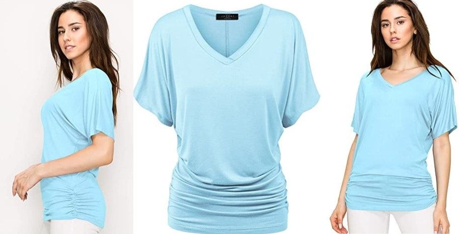 Every girl needs a selection of elegant tee shirts that aren’t the usual cut. And this V neck top is my go-to. It’s super lightweight and soft on the skin and the neckline is extremely flattering.