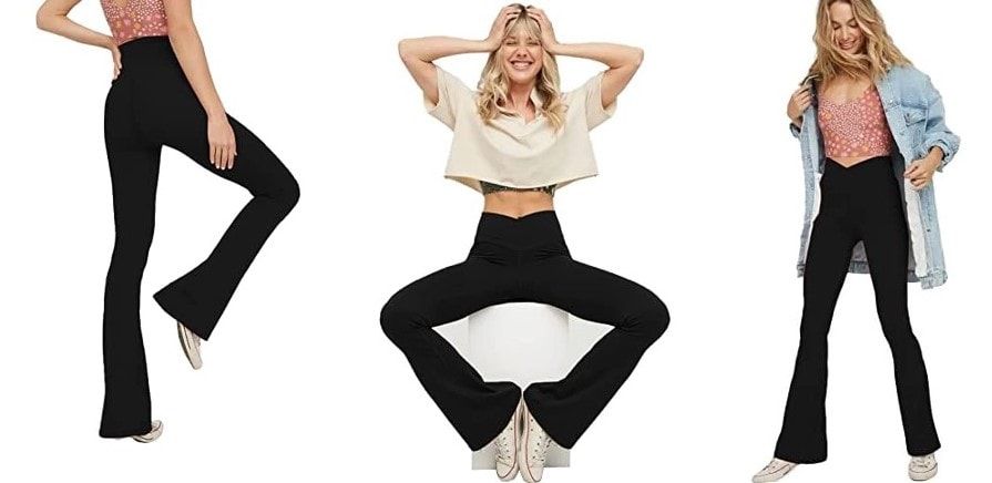 These aren’t just any high-waisted leggings, they have an added flare and the fabric is moisture wicking for dry comfort. These bootleg pants also have a V shape waistband for an extremely flattering fit.