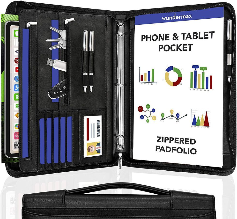 Need a way to hold all your work stuff while looking super professional and put together? Go with this zippered padfolio that holds cards, pens, keys, your phone or tablet, papers, and more in a sleek black carrying case. There’s also a three-ring binder in the middle to hold important notes or handouts.