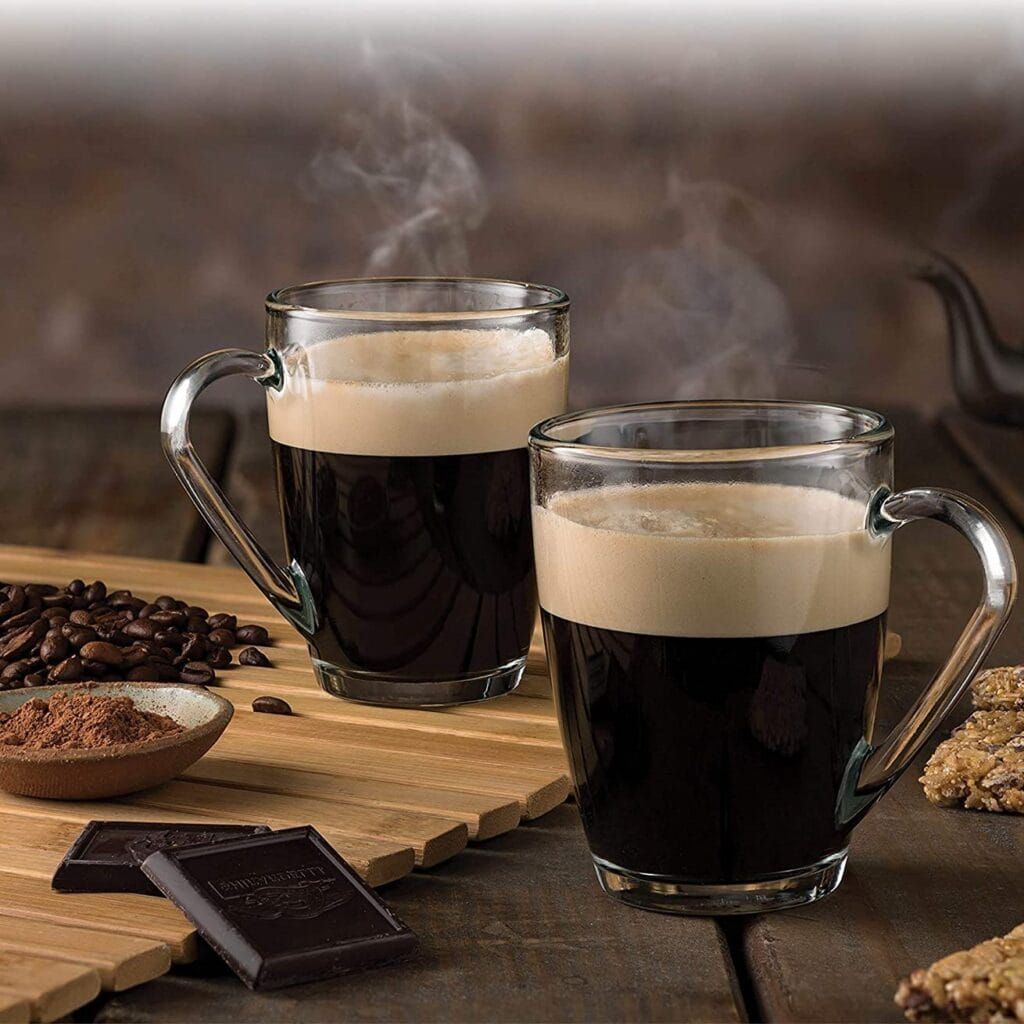 Looking for a set of thermal shock-resistant glass coffee mugs? Look no further than this 10¾-ounce set. This six-pack of mugs is perfect for hot and cold beverages and is made from tempered glass to withstand thermal shocks. Whether you’re looking for cappuccino mugs, latte glasses, or espresso cups, this set has you covered. The convenient handle makes them easy to use, and the stylish design will complement any kitchen décor.