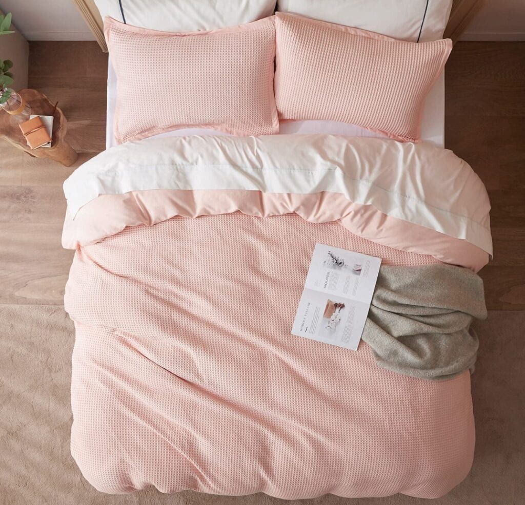 Take a look at this review of this duvet set: “Absolutely in LOVE with this duvet cover. It’s so soft and luxurious. The waffle weave is awesome for adding some texture to your bedding. It looks like something from a high end store. I have purchased a lot of bedding items off Amazon and this is hands down my favorite thing so far.”