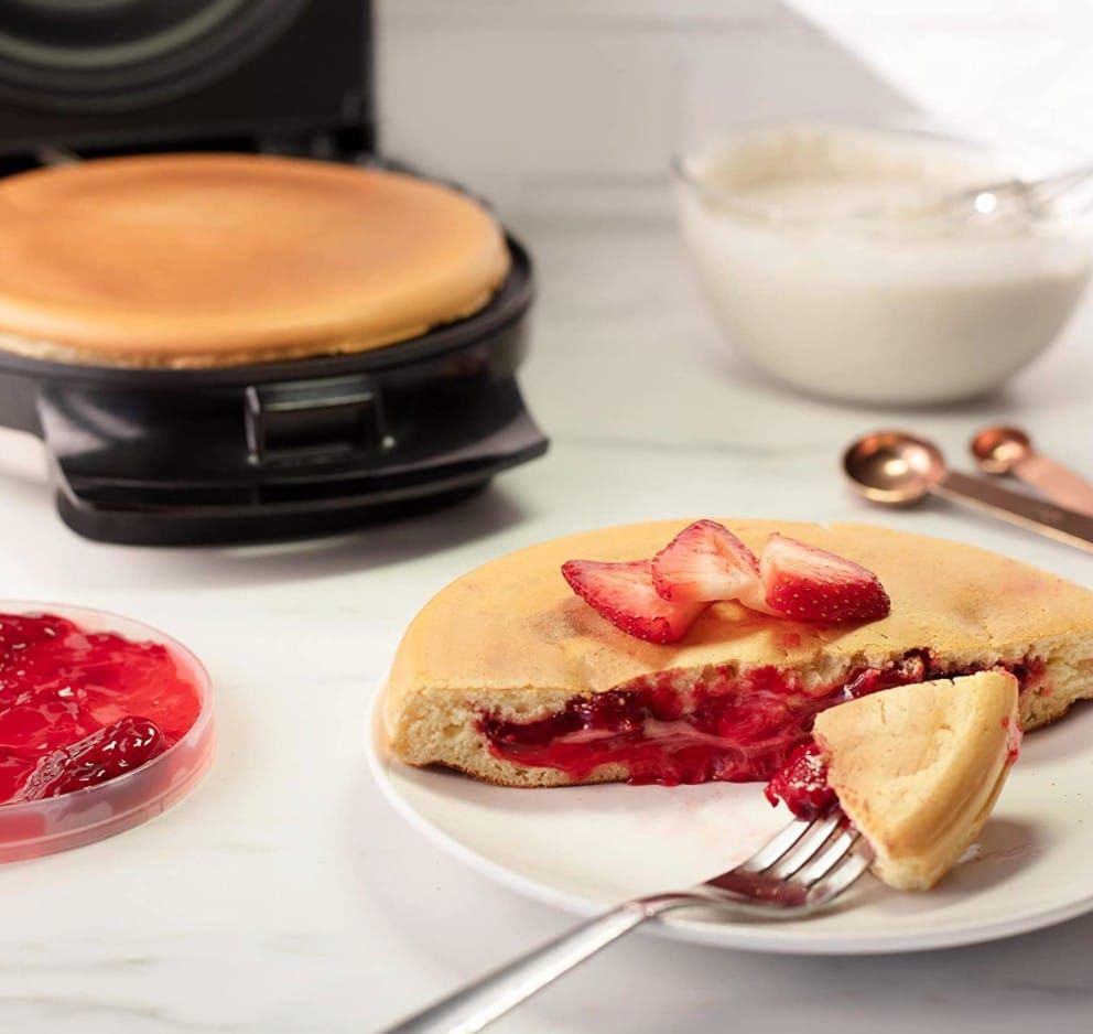 Treat yourself to the breakfast of dreams when you snag one of these stuffed pancake makers. From jelly to chocolate spread, there are so many great filling choices, and if you want to get really creative you can even branch out into savory fillings – the options are truly endless!
