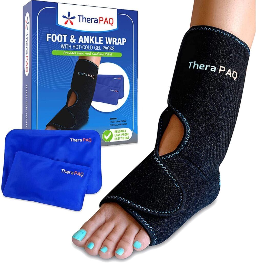 As a volleyball player, I can’t even begin to tell you how much tape, ice, and plastic I’ve seen used for sprained ankles. All for the ice to melt and it to become a bag of water up under your foot! This Foot And Ankle Wrap can be used on either side and tightly secures the gel packs to cover your entire ankle while still allowing you to walk freely.