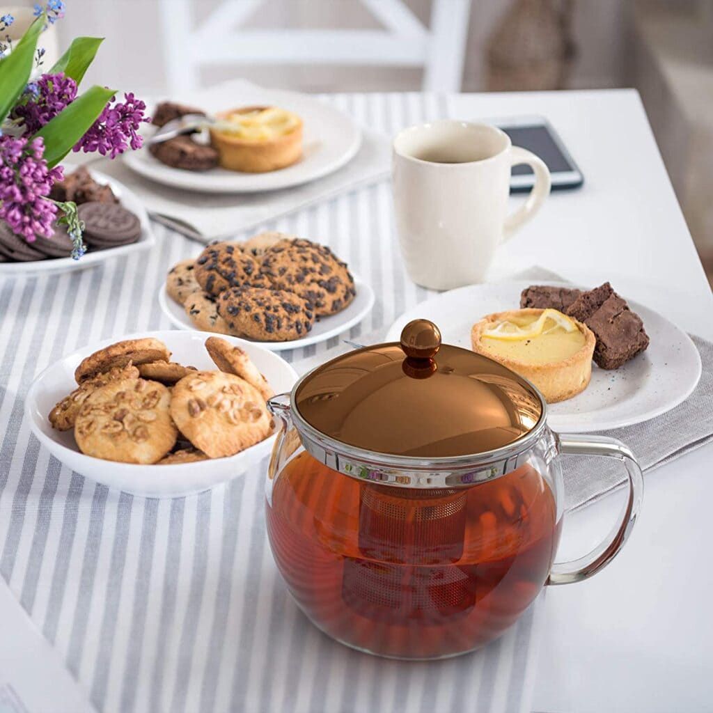 There are tea drinkers and then there are serious tea drinkers who need to infuse an entire pot. This teapot with a built-in diffuser is great for loose leaf teas with heat-resistant glass and a stylish copper lid. You won’t need tea bags or paper filters ever again. The stainless steel infuser helps keep your tea in contact with the water at all times, delivering a great-tasting and smelling experience.