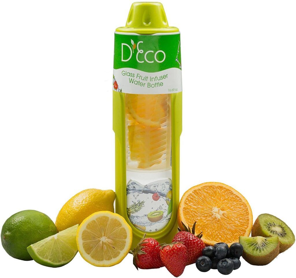 Water infused with different fruits and even vegetables and herbs like cucumber and mint are supremely refreshing. This fruit-infused glass water bottle will let you experiment with flavors and take your creation on the road. This bottle holds 20 ounces and has a silicone grip for easier holding. The built-in cylinder inside is meant to be packed with fruit without getting any pulp or seeds in your water.
