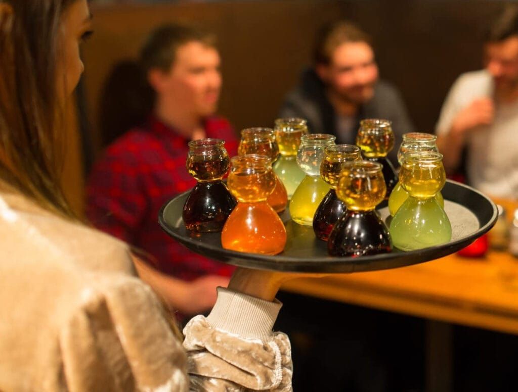 Double your shot, double your fun? This double bubble layered shot glass is an exercise in science. Why, you ask? Because liquor is less dense than most chasers you drink so the liquids in this glass naturally want to separate. Add the shot and the chaser in one glass. The patented shape gives you the liquor first and the chaser last in one cool little mug.