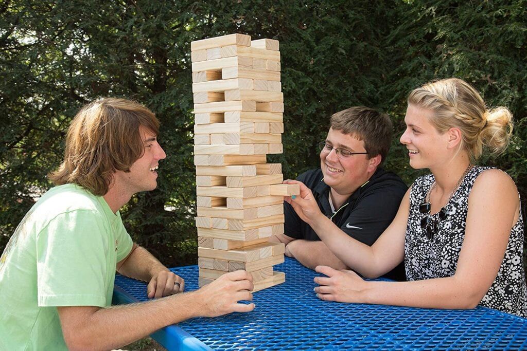 You’ve probably played Jenga but have you ever played Jenga on steroids? This giant tumbling stacking game is a blast outdoors where you can build a tower up to five feet tall. This life-sized game comes with 60 wooden pieces and a heavy-duty carrying bag so you can take it to the cookout, block party, or tailgate with ease.