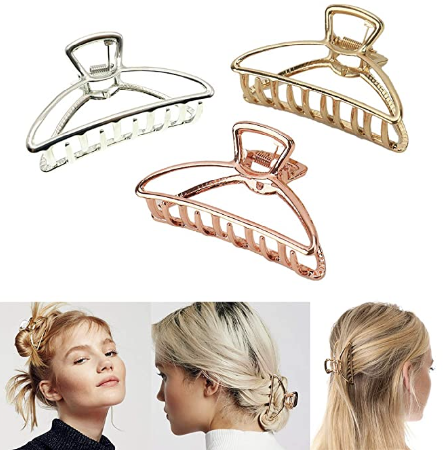 These strong, durable, and easy-to-use clips are perfect if you want to tie your hair back without the pull and tension of a bobble. And for under $10, you’ll receive a pack of three hair clips in silver, rose gold, and gold.