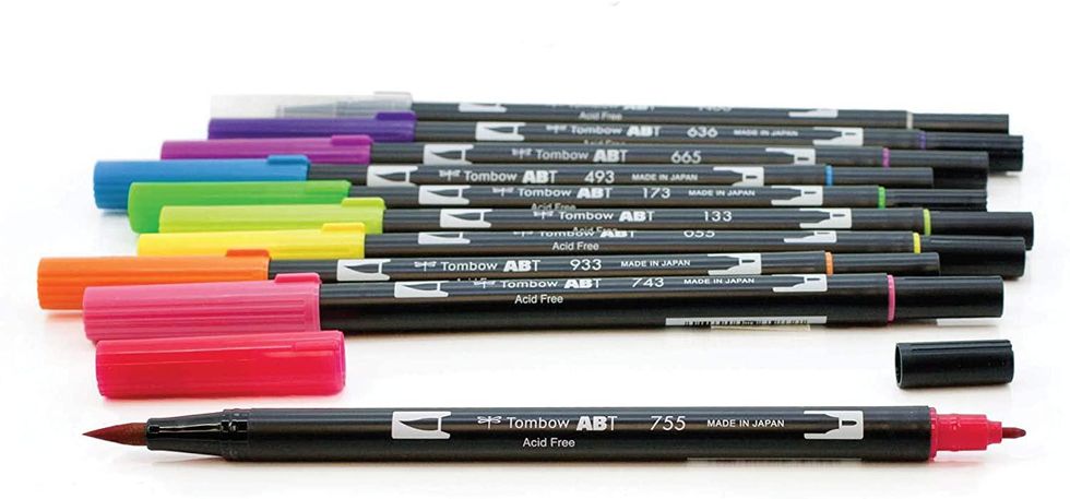 They come in ten versatile shades, and each pen has a brush end for larger areas, plus a smaller nib for precise coloring.