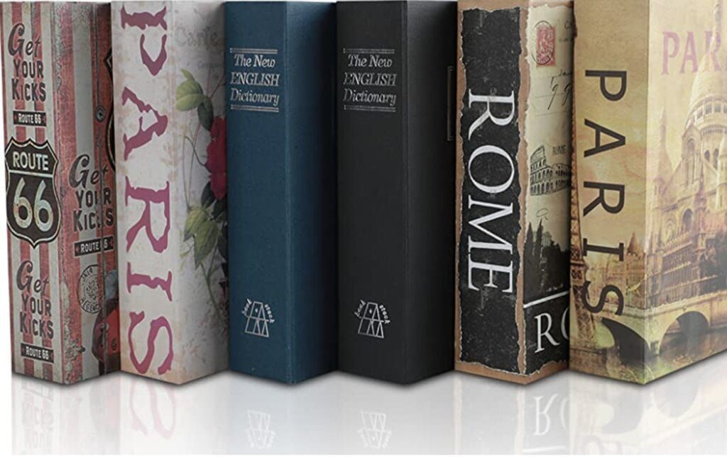 One of these books is not like the other. Can you guess which one? I’ll give you a hint. It’s the one that says The New English Dictionary. So what is it actually? A hidden safe! Hide your money, keys, and more.
