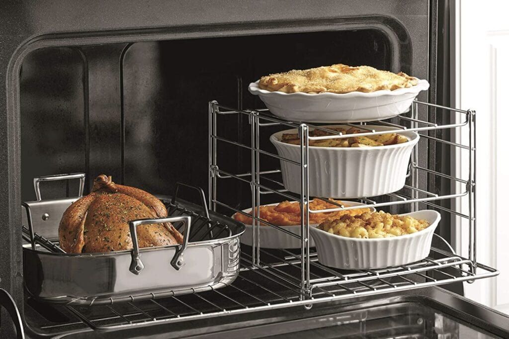 If you have a pie you’d like to bake but also need to cook a casserole and a rotisserie chicken, you’ll need to maximize oven time and space. This three-tiered oven rack is going to be incredibly useful for those times you need to bake a load of food.
