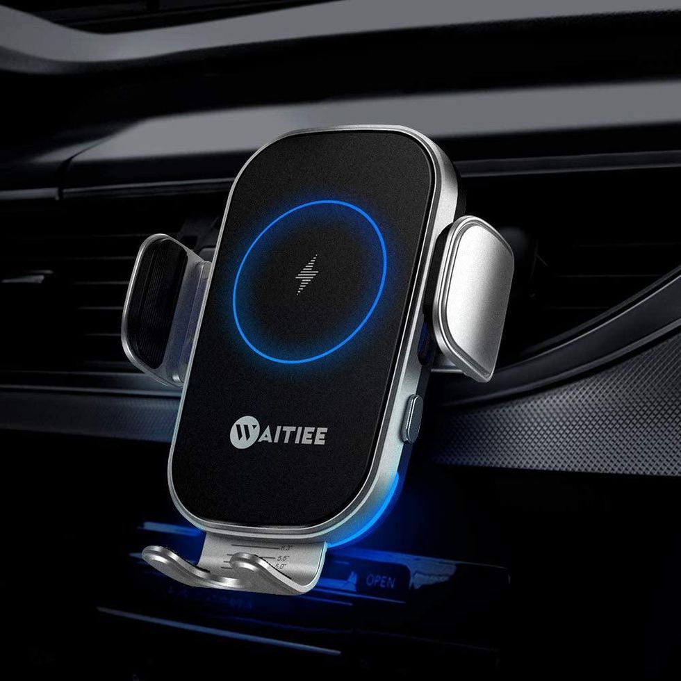 Why should you have to choose between mounting your phone and charging your phone when you’re in the car? This Waitiee unit does both: Mounting on your dashboard or air vent and delivering a charge simultaneously. Ideal for iPhones or Android devices, this wireless car charger has an easy, one-button open/close and works even with phones still in their cases.