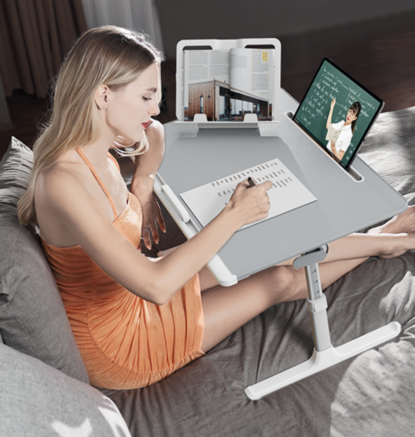 has been a great addition and helped me work comfortably in my bed, couch, even the floor. The laptop tray is foldable so you can easily store under your bed or couch. The legs are height adjustable and you can also adjust the angle. This one is truly a must-have if you ever work from home.