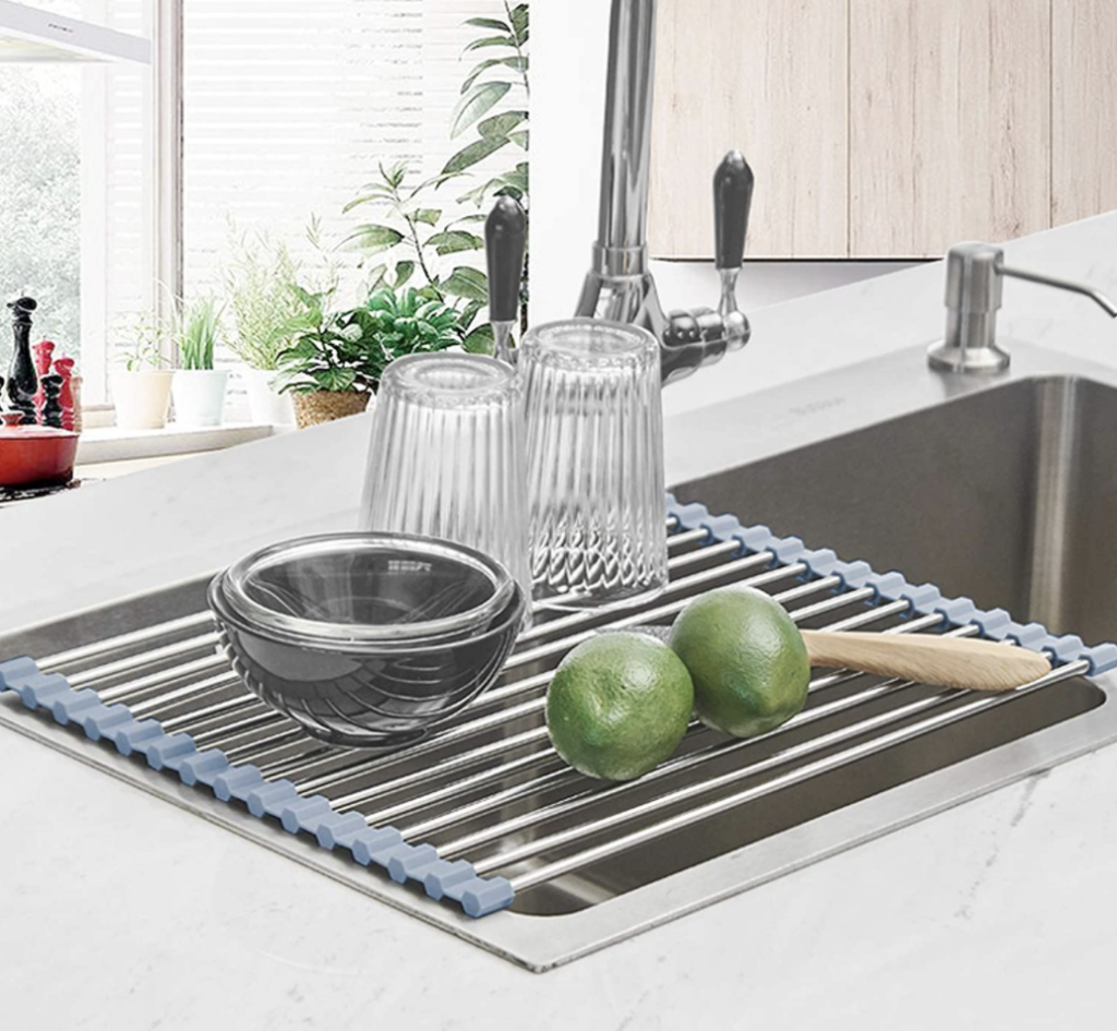 Dish drying racks have a major con and it’s that they take up too much space on a kitchen counter. A great fix for that is this roll up drying rack that fits over your kitchen sink. I love items that help save precious space, especially in the kitchen. I have one of these in my cart and I can’t wait to ditch our drying rack for this. It comes in two different sizes depending on the size you’ll need for your sink.