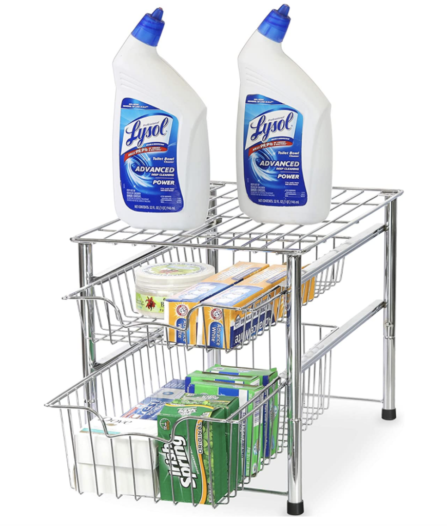 If you have a cabinet or stuff on your countertop that could use some tidying, consider this 2-tier basket drawer. This one is easy to assemble, no hardware or tools necessary, and the chrome finish makes it look like decor so it adds a nice touch.