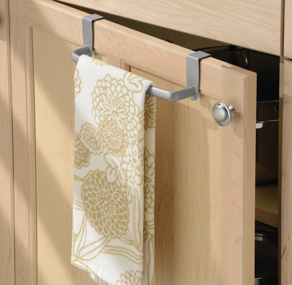 If you’re tired of your dish towels not drying completely because they are strewn about on your kitchen counter, then this over the cabinet bar rack is for you. It’s so simple because all you have to do is place it over your cabinet door. No screws or installation required. I’m always pleased to find the dish towels where they should be and dry.
