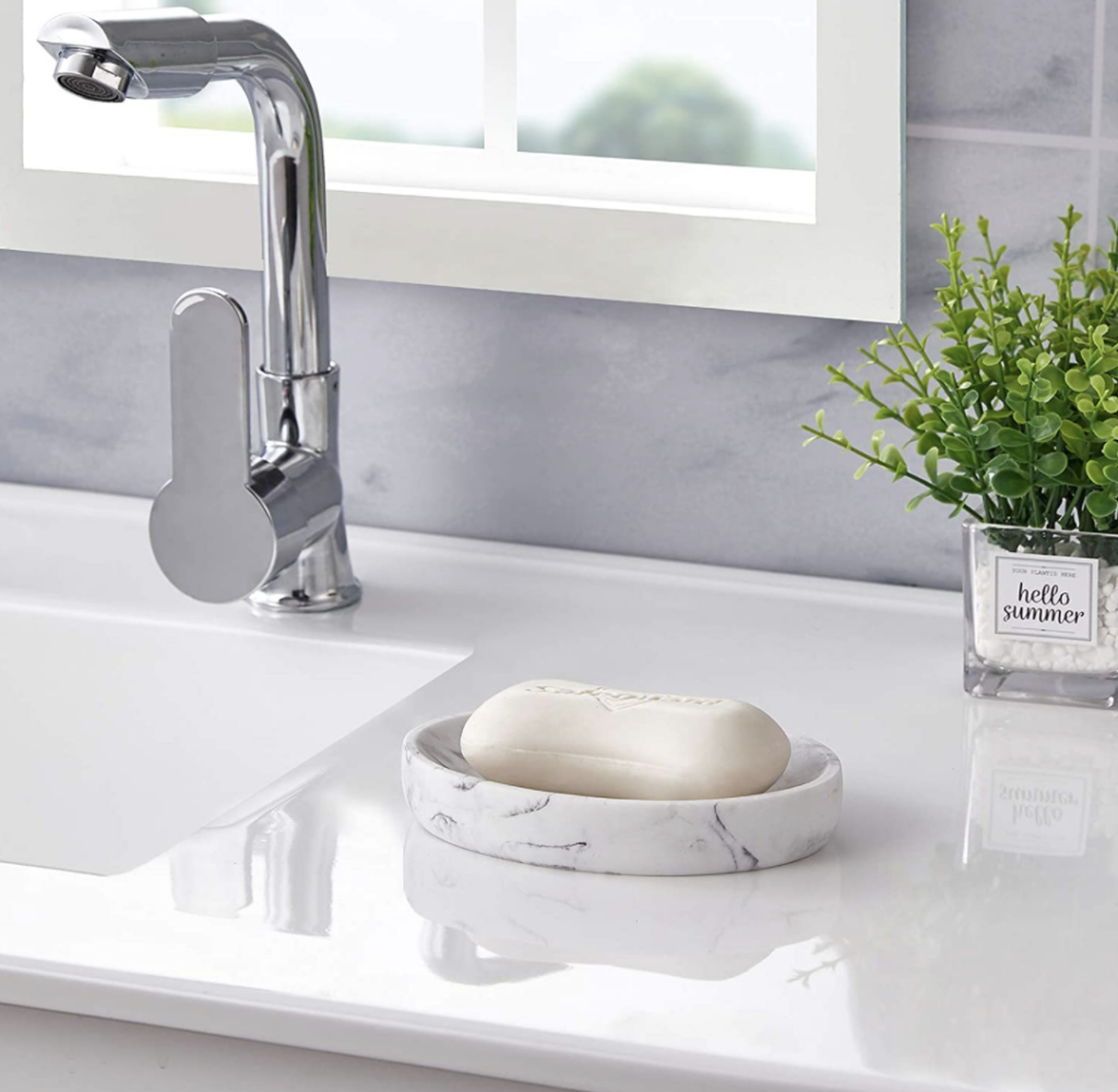 A soap dish may not be something you’d think is important but the devil is in the details and this soap dish is beautiful piece to gave in your bathroom. The marble effect looks just like the real thing and I think it will match many decor choices. “This soap dish is well made; it is sturdy and attractive. The marble look makes it appear expensive. It is easy to wipe clean and the bottom ridges are adequate to allow the soap to dry between uses. It’s just what I needed.”