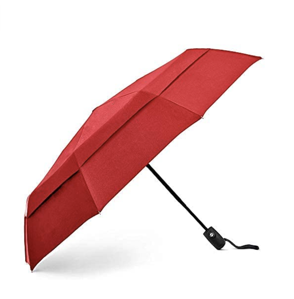 Few things are as embarrassing as having your umbrella invert on you while you’re walking around on windy days — so grab this windproof one. It won’t turn inside-out during strong gusts, as the fiberglass ribs are seriously resilient. Plus, it comes in a bunch of fun colors, including hot pink.