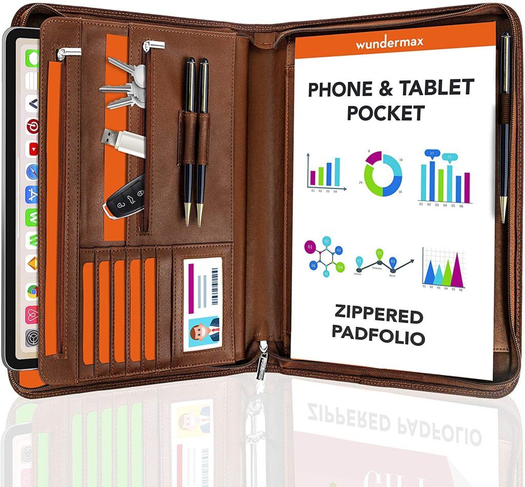 Whether you’ve got documents you need to keep track of or simply want to look good at the office, this portfolio binder is right up your alley. It’s made from sleek vegan leather, with tons of storage space inside for pens, electronics, and more. Choose from two colors: brown or black.