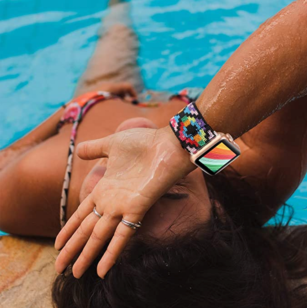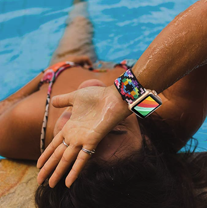 Plant me firmly in the #TeamStretchyBand camp after trying all manner of Apple Watch bands over the past few years. These stretchy loop strap bands on Amazon are cheap (think “less than $10) and come in an assortment of fun colors and patterns. My personal favorites are the red/pink, which features an almost Moroccan flair, and the light brown with leopard spots.
