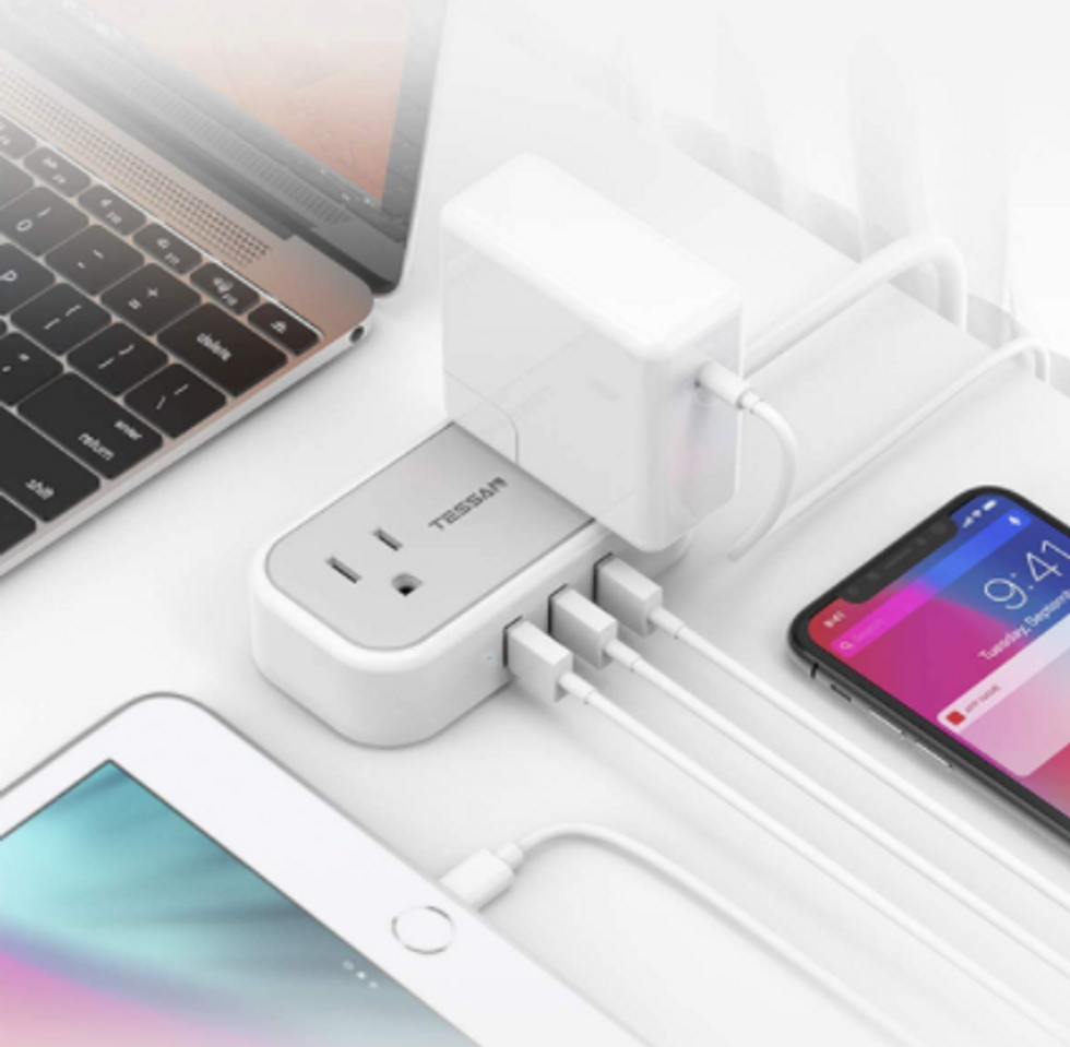 I have a secret obsession with power strips: Big ones, small ones, flat ones, even the ones that fit right up against your outlet. This small flat plug power strip might be the next one to be added to my Amazon cart. It sits flush on a nightstand or desk with two outlets and three USB ports to deliver plenty of juice to your gadgets. It comes in multiple colors with various cord lengths.