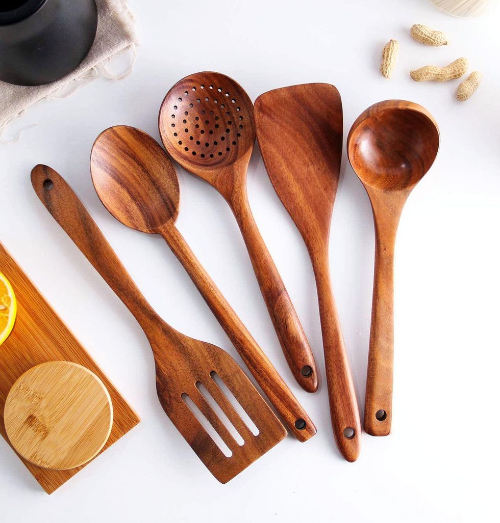 This Six-Piece Set of Teak Wood Kitchen Utensils Is Beautiful and Eco-Friendly