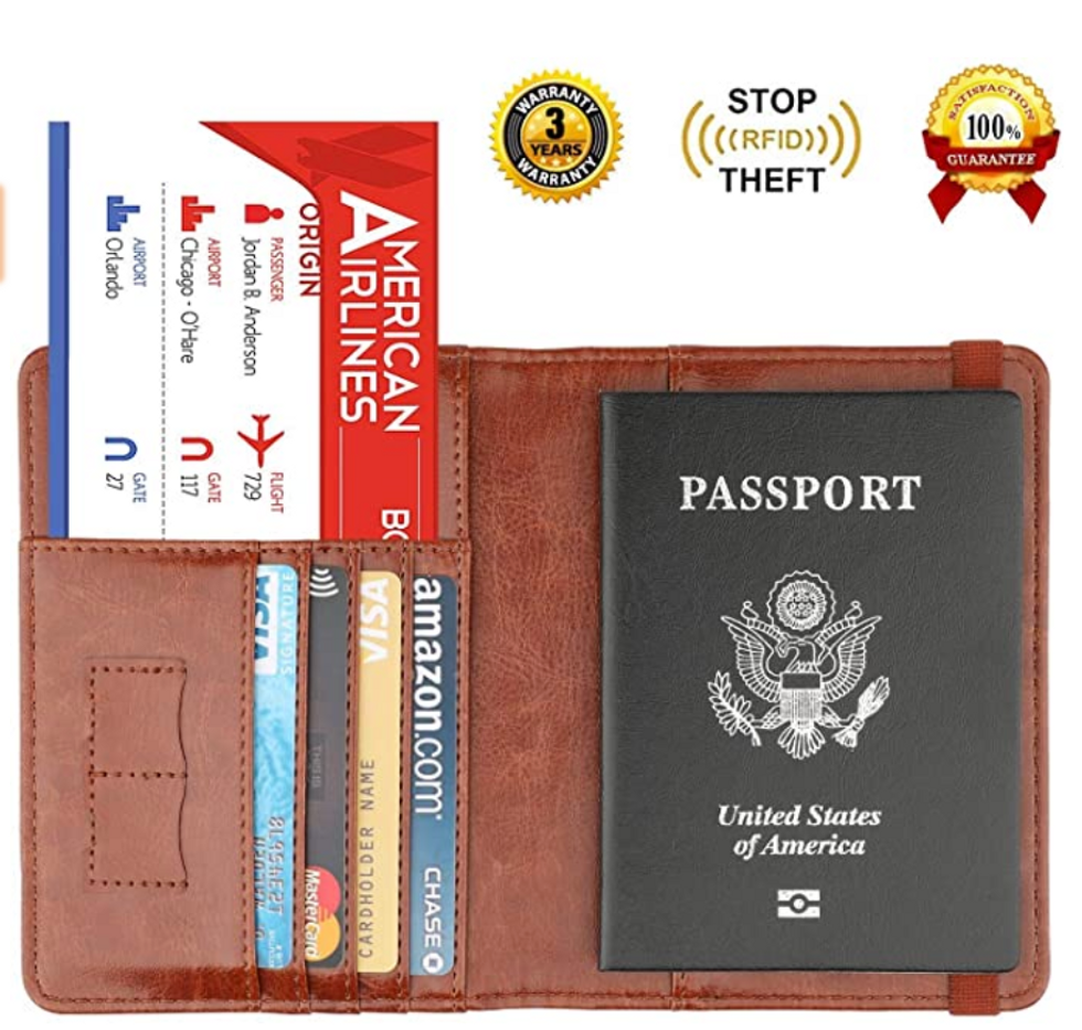 Made from premium synthetic leather, this passport book blocks the RFID signals that electronic pickpockets use to access your sensitive information. There are slots for business cards, credit cards, your passport, and more, plus the ultra-slim design means it takes up hardly any space in your carry-on bag. Grab it in more than 15 colors, including red, brown, light blue, orange, and more.