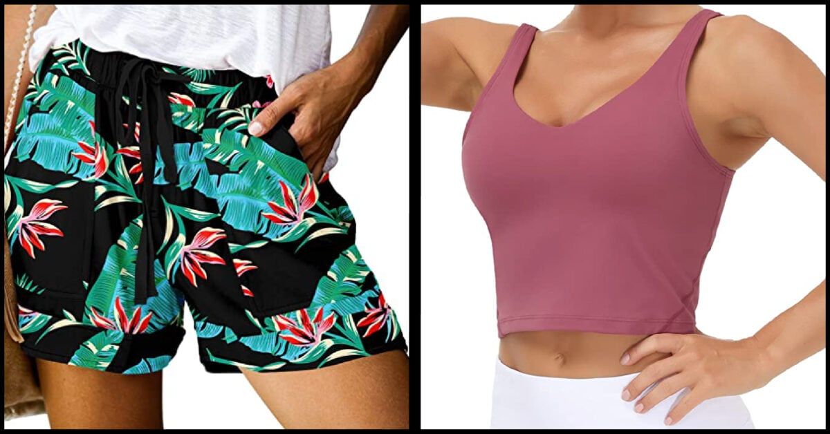 Maybe athletic shorts aren’t your thing, which is certainly the category the versions we’ve already looked at fit into. These mid-waist shorts are a step up in style but no less comfortable with an elastic waistband, adjustable drawstring, and multiple pockets for all your stuff. I particularly love the floral print pictured but don’t neglect to look at cheetah, camo, and tie-dye options as well.