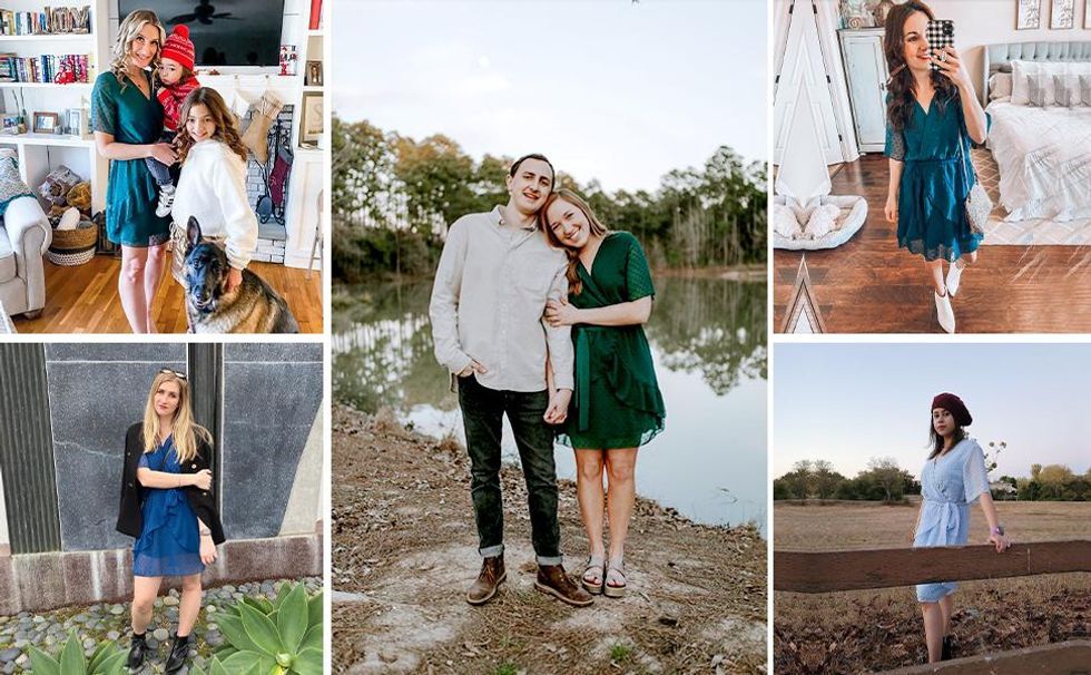I love the look of wrap dresses but it’s so hard to keep them closed without a lot of help from pins or hooks that might not be included with the dress. This faux wrap dress solves that problem and gives you the look you want without the hassle! Plus it can be styled in all kinds of ways: check out that jacket and boots combo!