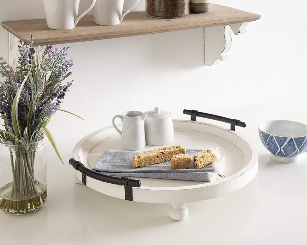 Whether you want to serve breakfast in style or you want to dress up your coffee table with some small knick-knacks, this tray is a great addition. It has an antique look with beautiful rustic finishes, making it ideal for anyone with the farmhouse aesthetic.