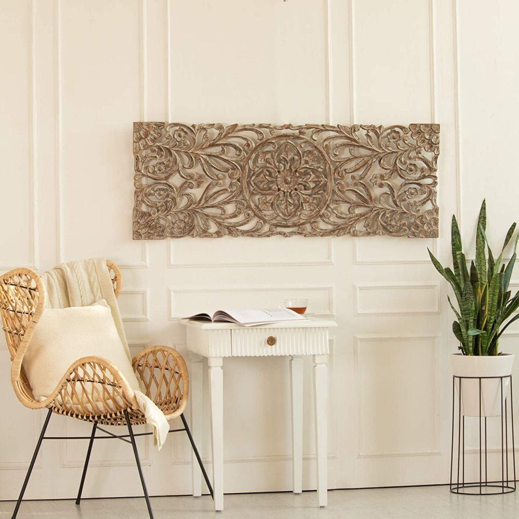 If you love the medallion art that I mentioned earlier but you’re looking for something a little more narrow, this piece may be more your speed. Rather than three pieces, it’s one long piece that can be hung either horizontally or vertically depending on your decor needs.