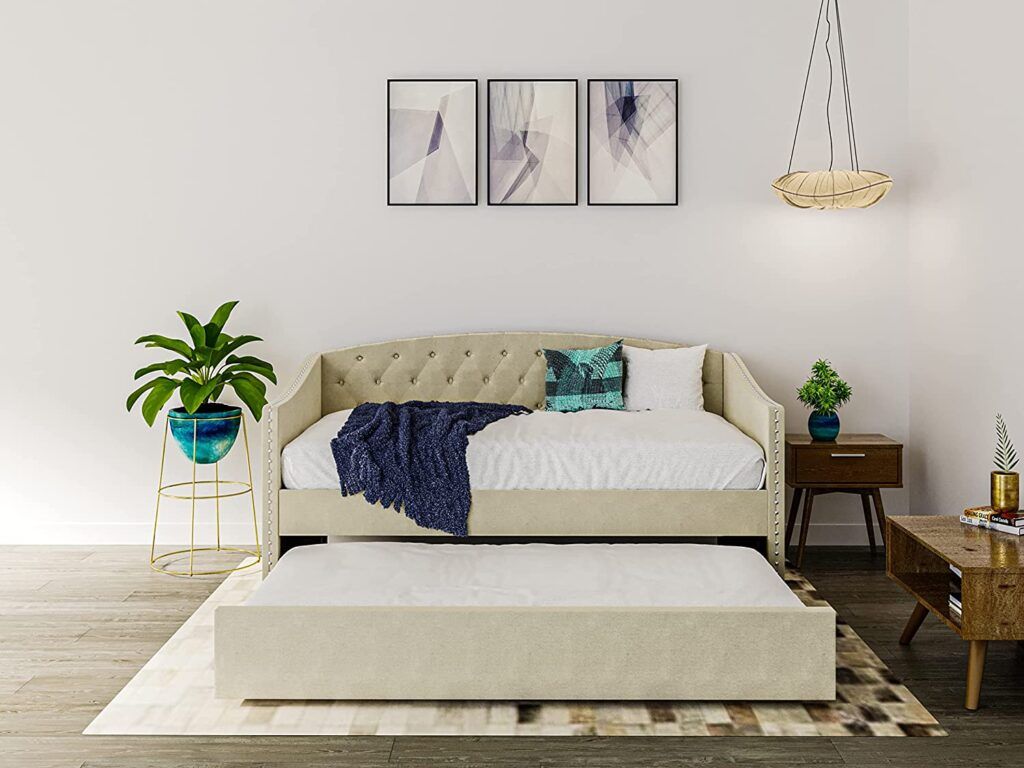When you’re short on space, you need all the extra sleeping room you can get. That’s why this trundle bed is so handy. The twin-sized daybed is perfect for those who want lounge space that turns into more.