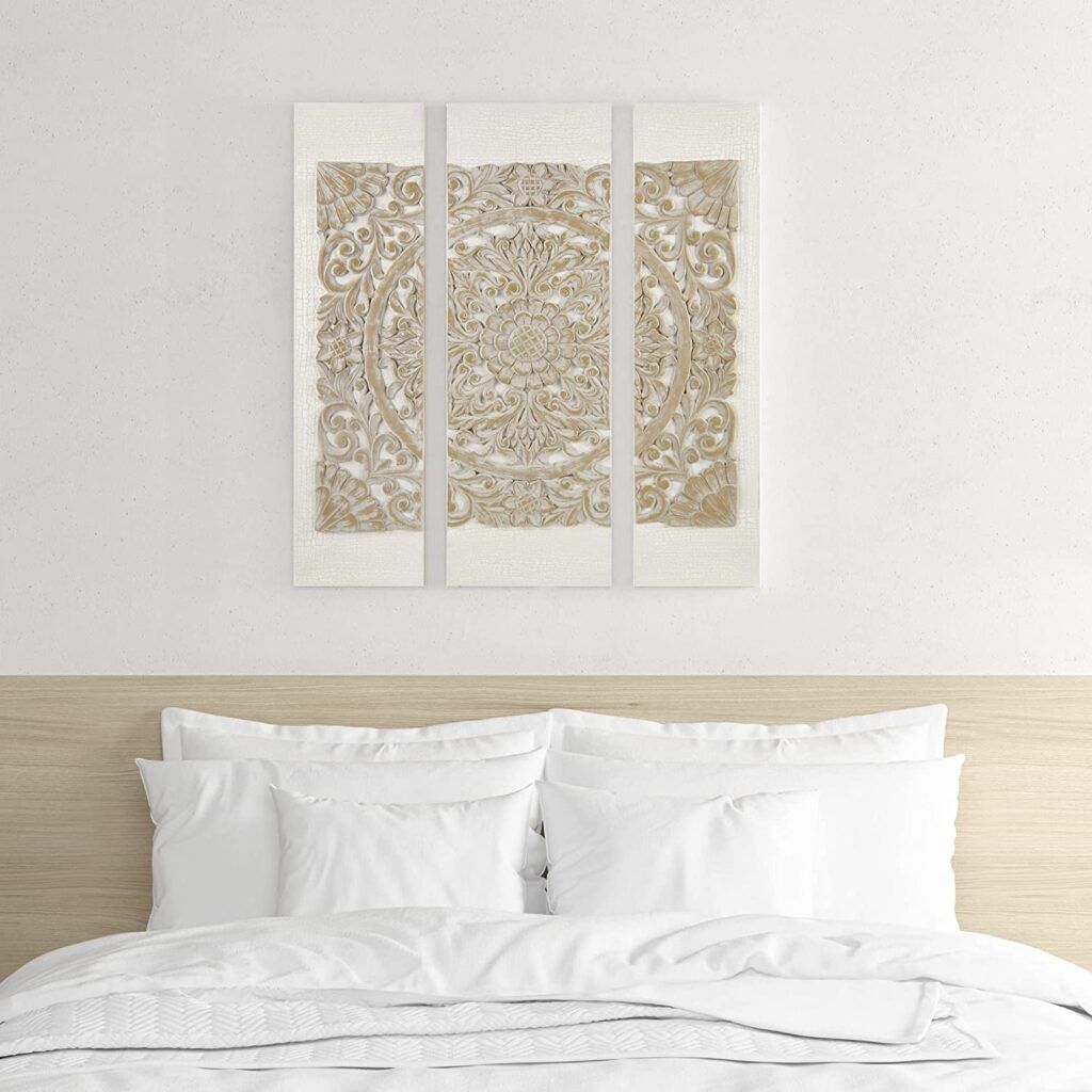 Modern boho meets contemporary with this medallion wall decor. The three-piece set comes ready to hang, so all you need to do is figure out where you want it to go!