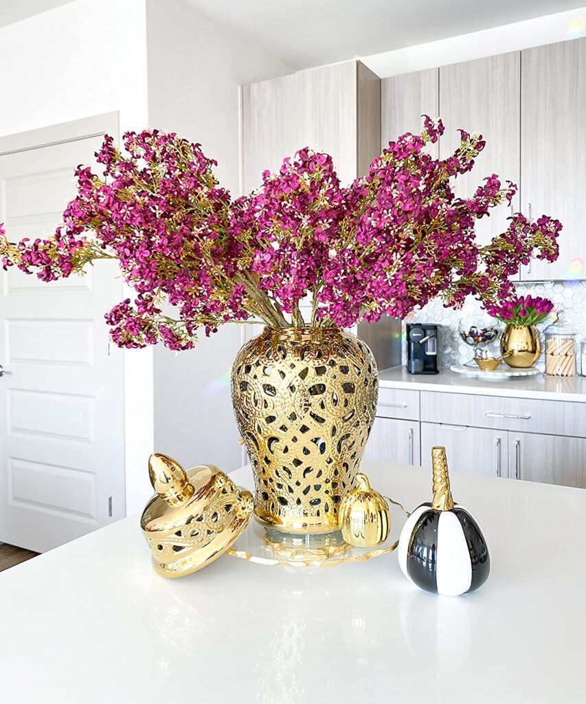 Sure you could just get a regular vase and throw in some flower arrangements. Or you could take things up a notch and get this ceramic jar instead. It’s ornate, high-quality, and a statement piece to say the least. Throw in some oversized flower arrangements (like in the photo) and it’ll be the star of the show.