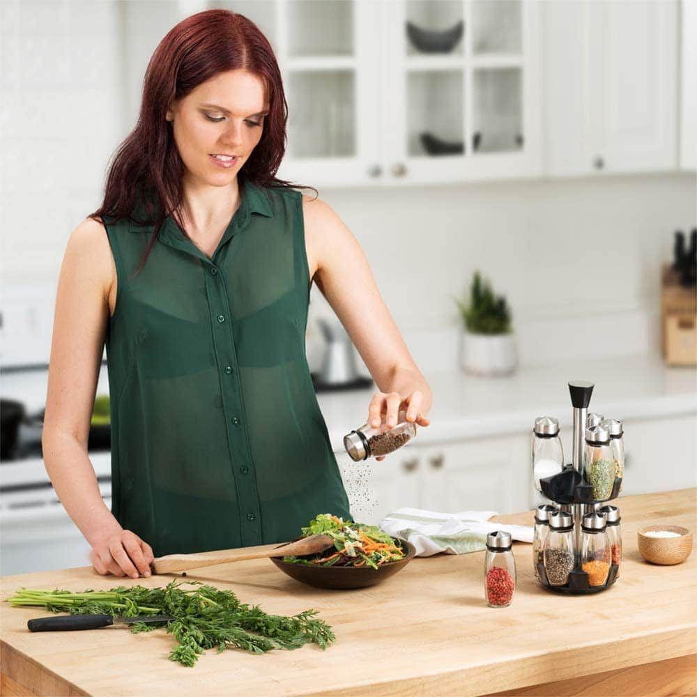 Get your seasonings in order — and I don’t mean lining up the jars of nutmeg and lemon pepper that you’ve had sitting around since the last century. This 12-jar revolving spice rack is a great solution for keeping the spices you use most right at your fingertips. It has a small footprint, too, so you can easily keep it right out on your countertop.