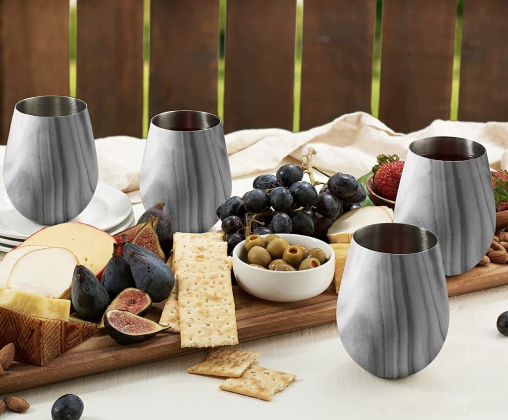 What’s your most common complaint about wine glasses? How easily broken they are? How they always seem to be empty? You can at least solve the first problem with this set of unbreakable wine glasses that are stemless and made of stainless steel. Grab a set of four 18-ounce glasses in a variety of patterns including marble, ombre, and brushed stainless steel.