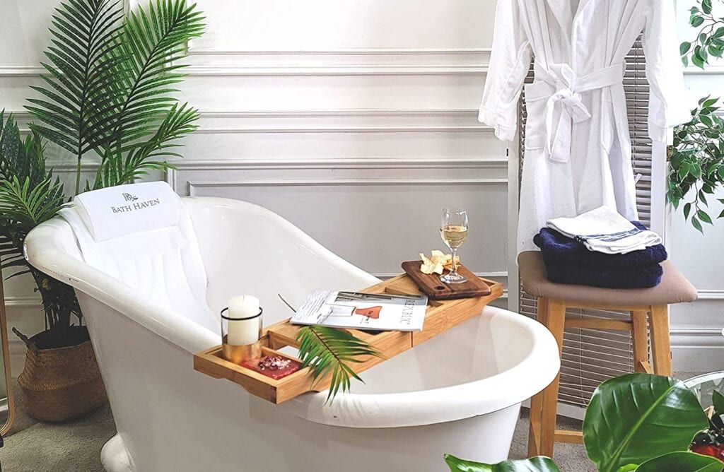Regardless of the type of bathtub you have, you can transform your bathing experience from “basic” to “barely want to get out” with something as simple as a bathtub pillow. Six suction cups hold the pillow securely in place while an included hook for drying and storage is perfect for when it’s not in use. The pillow itself is made from 3D fabric for added breathability.