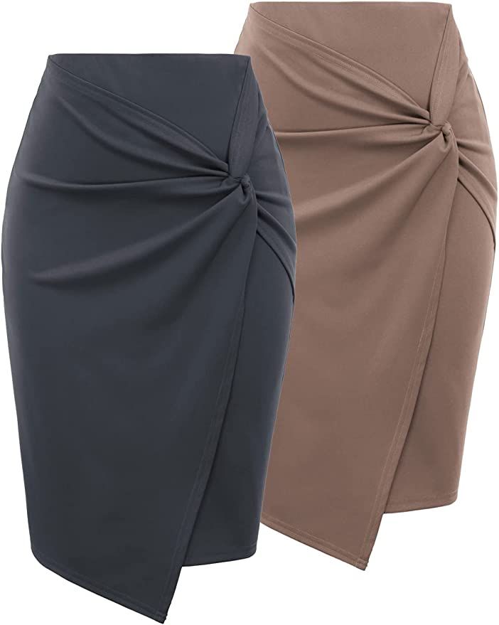 If you work outside the home (or even if you don’t), you need a good pencil skirt as an option in your closet. This one is stretchy, soft and comfortable with an asymmetrical wrap front that features a zipper in the back. A hip-hugging silhouette will make you look like the goddess you are. This comes in so many colors they had to add a dropdown menu to display them all.